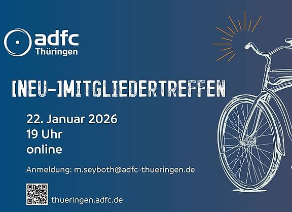 Am 22. Januar 19 Uhr findet das nächste (Neu-)Mitgliedertreffen des ADFC in Thüringen statt. Neumitglieder, aber auch alle anderen, die sich für die ADFC-Arbeit in Thüringen interessieren, sind herzlich dazu eingeladen.